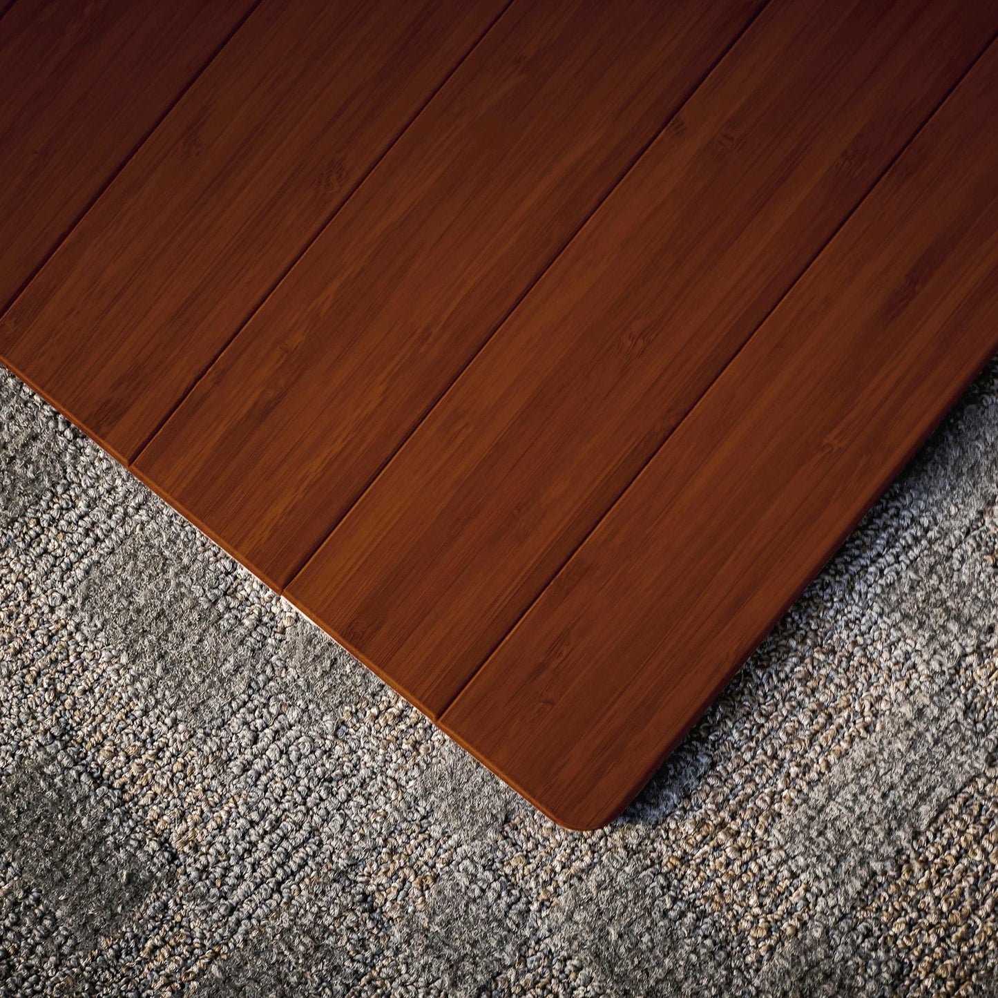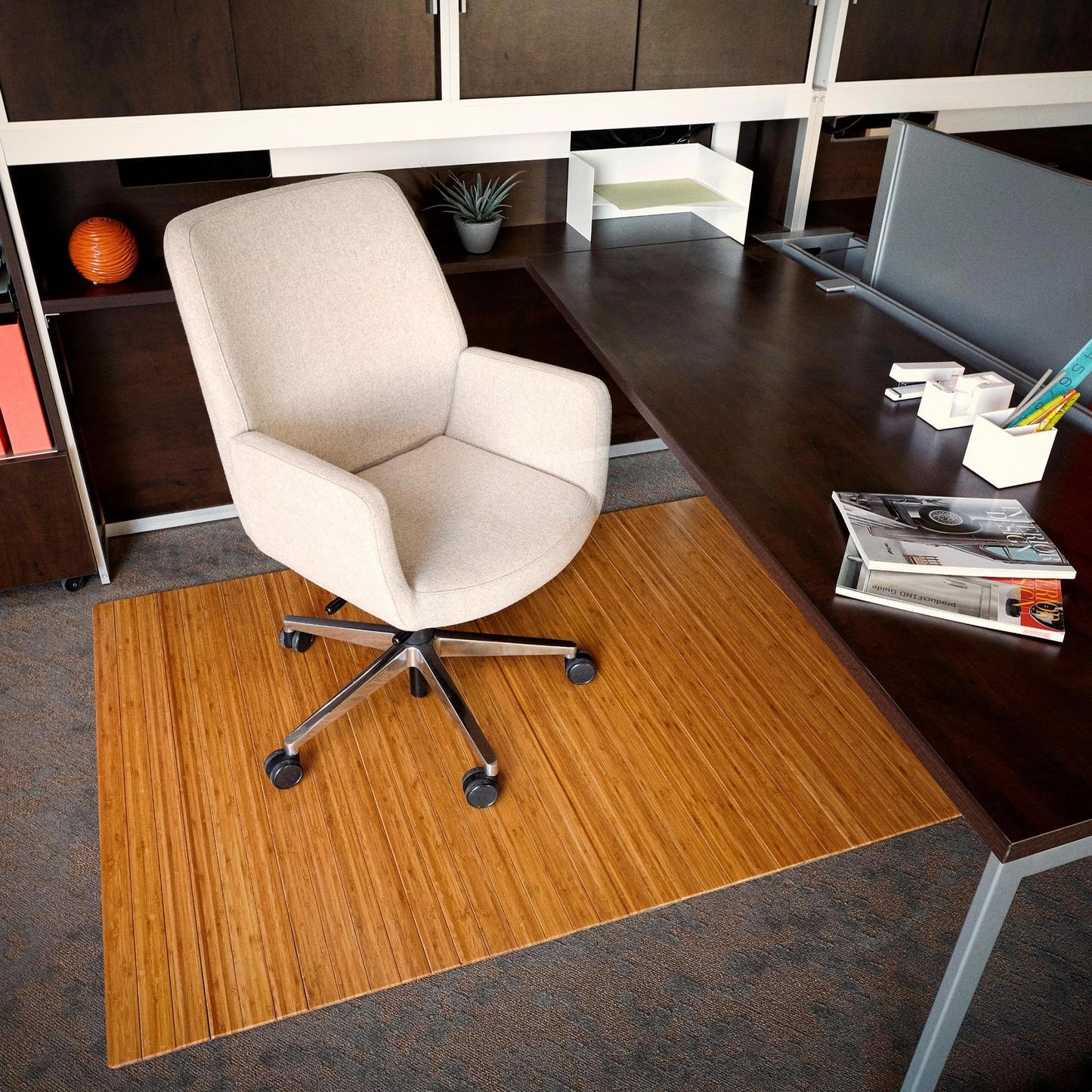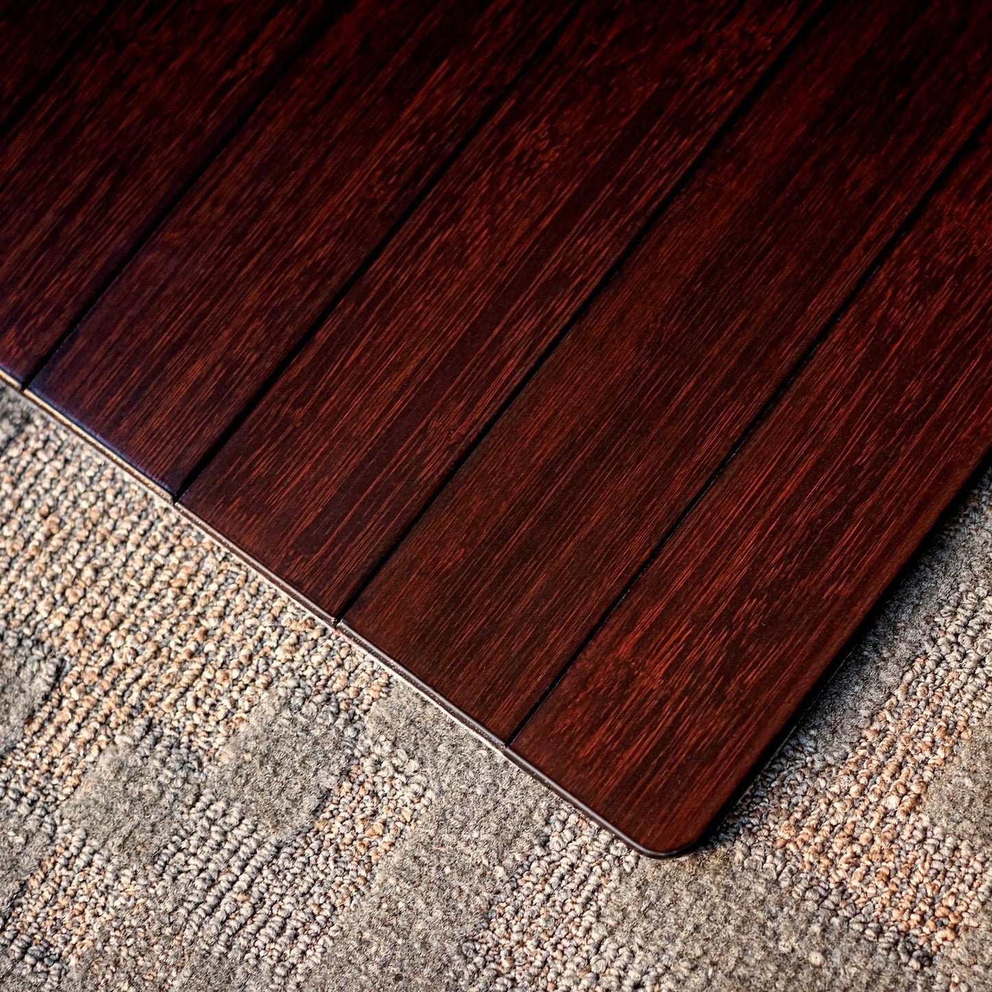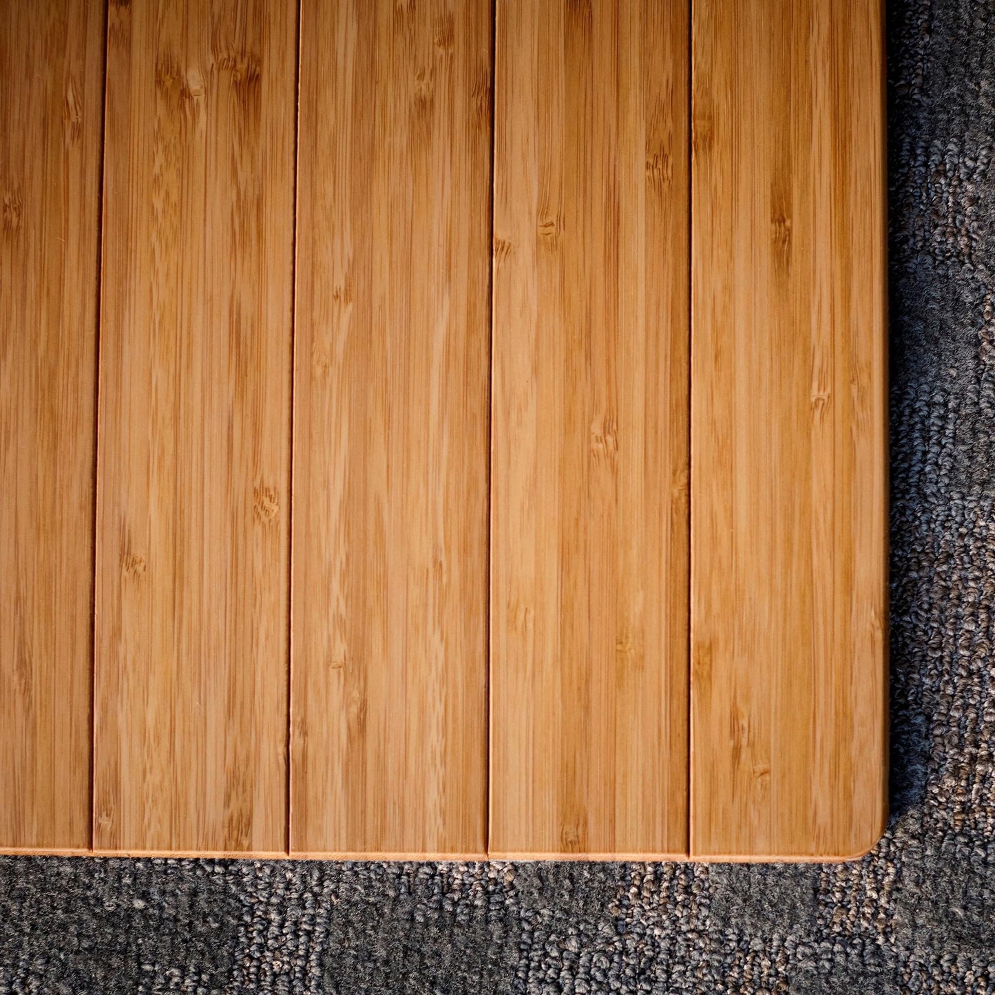 Upgrade your workspace with a durable, stylish, and eco-conscious office chair mat. Our patented Bamboo Office Chair Mats surpass plastic options in both aesthetics and performance. Designed for commercial carpets and hard floors, they combine natural charm with workplace reliability.