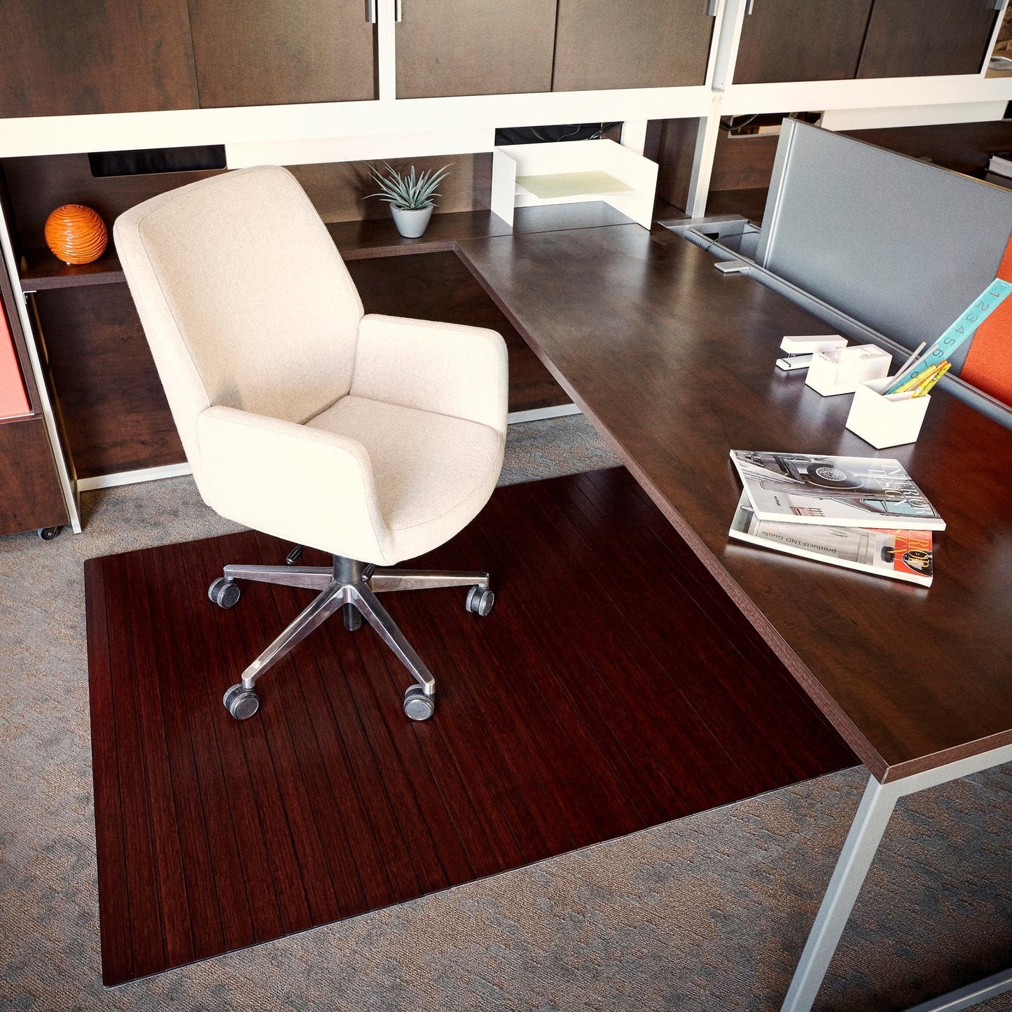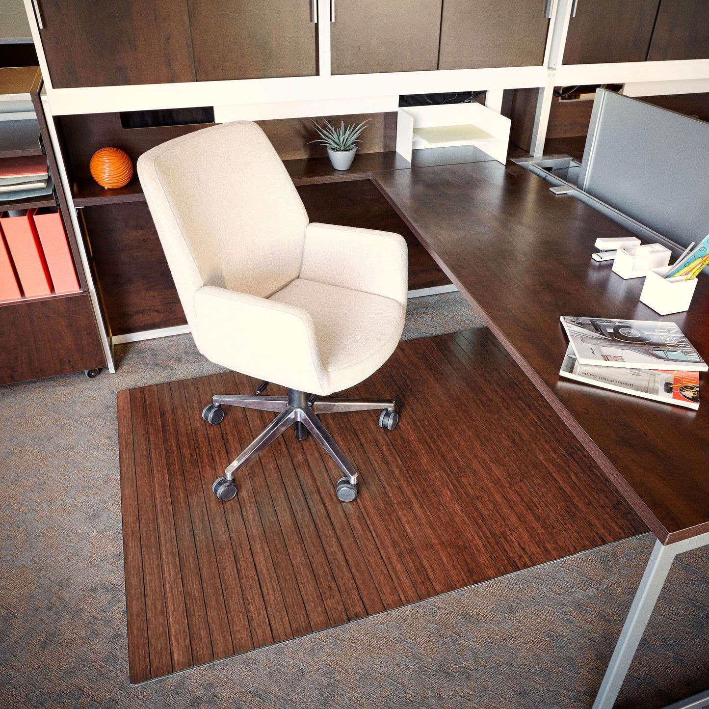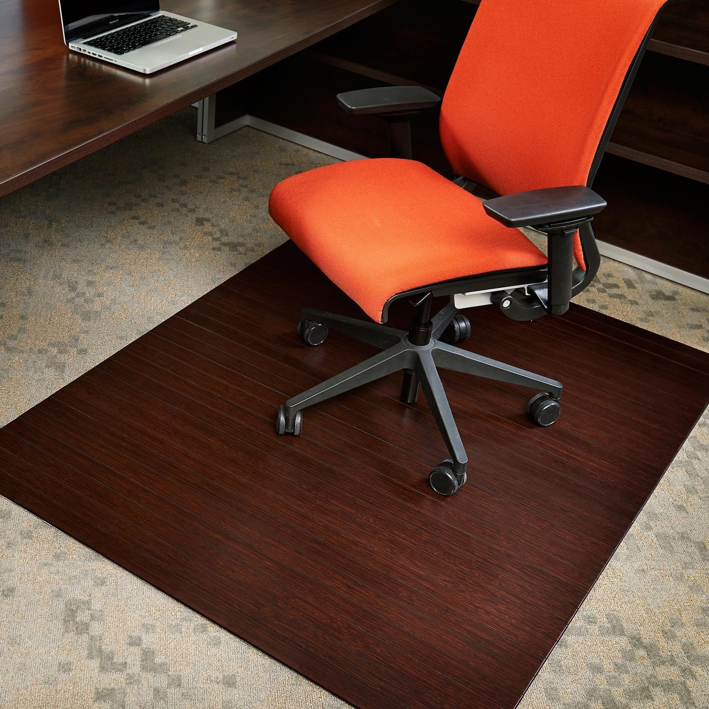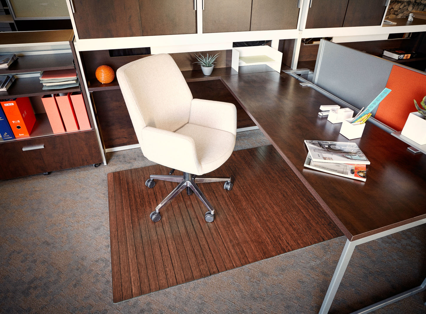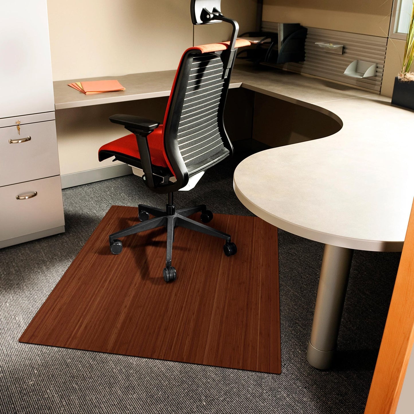 Upgrade your workspace with a durable, stylish, and eco-conscious office chair mat. Our patented Bamboo Office Chair Mats surpass plastic options in both aesthetics and performance. Designed for commercial carpets and hard floors, they combine natural charm with workplace reliability.