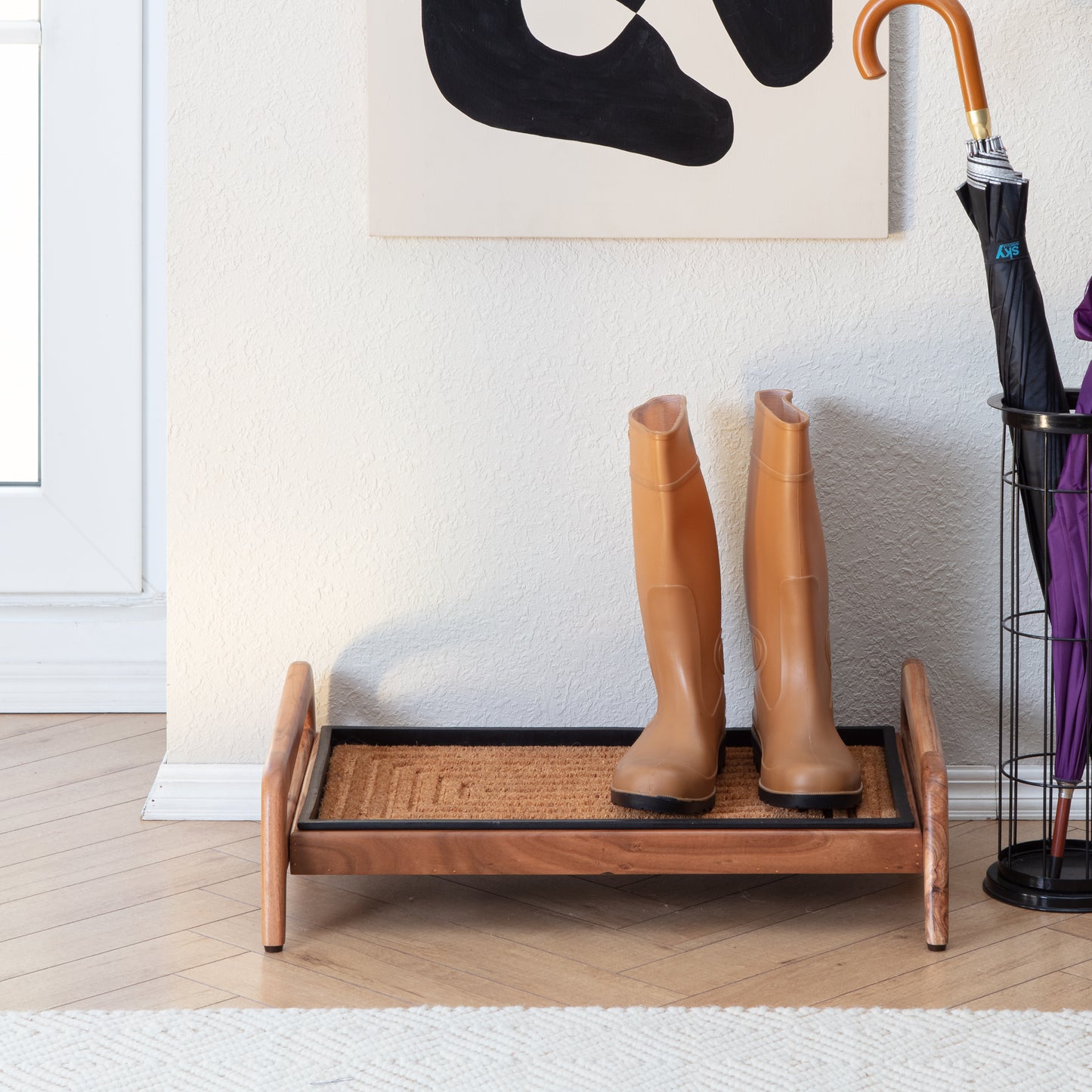 Your entryway deserves a stylish upgrade. This boot tray combines a woven coir insert for effortless cleaning, a durable recycled rubber base to protect your floors, and a stunning acacia stand for timeless elegance. Create a welcoming space that reflects your sophisticated taste.